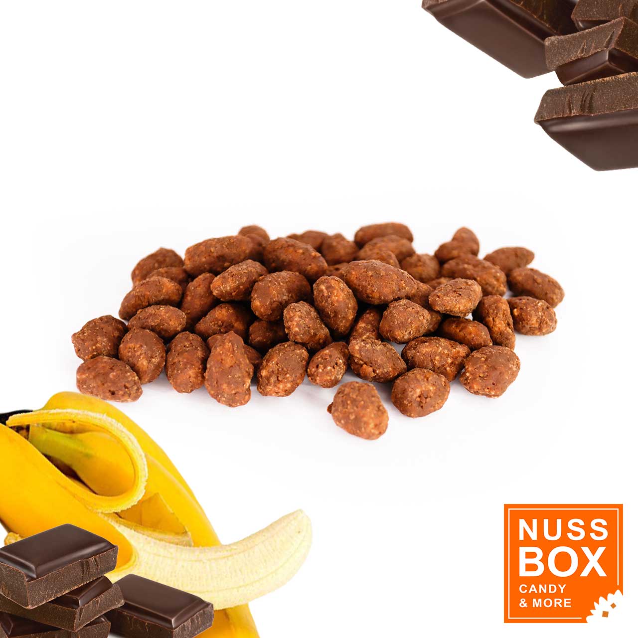 Feinste gebrannte Mandeln den Geschmack von Banane und Schokolade. Fruchtig, süß und zart.